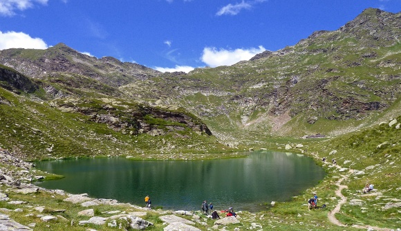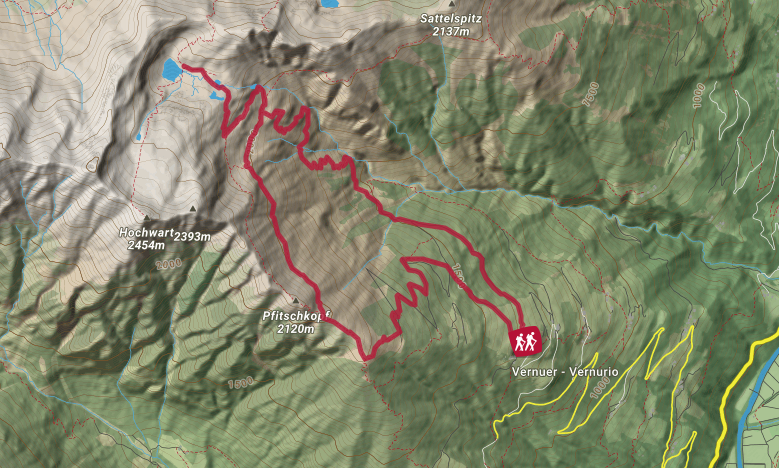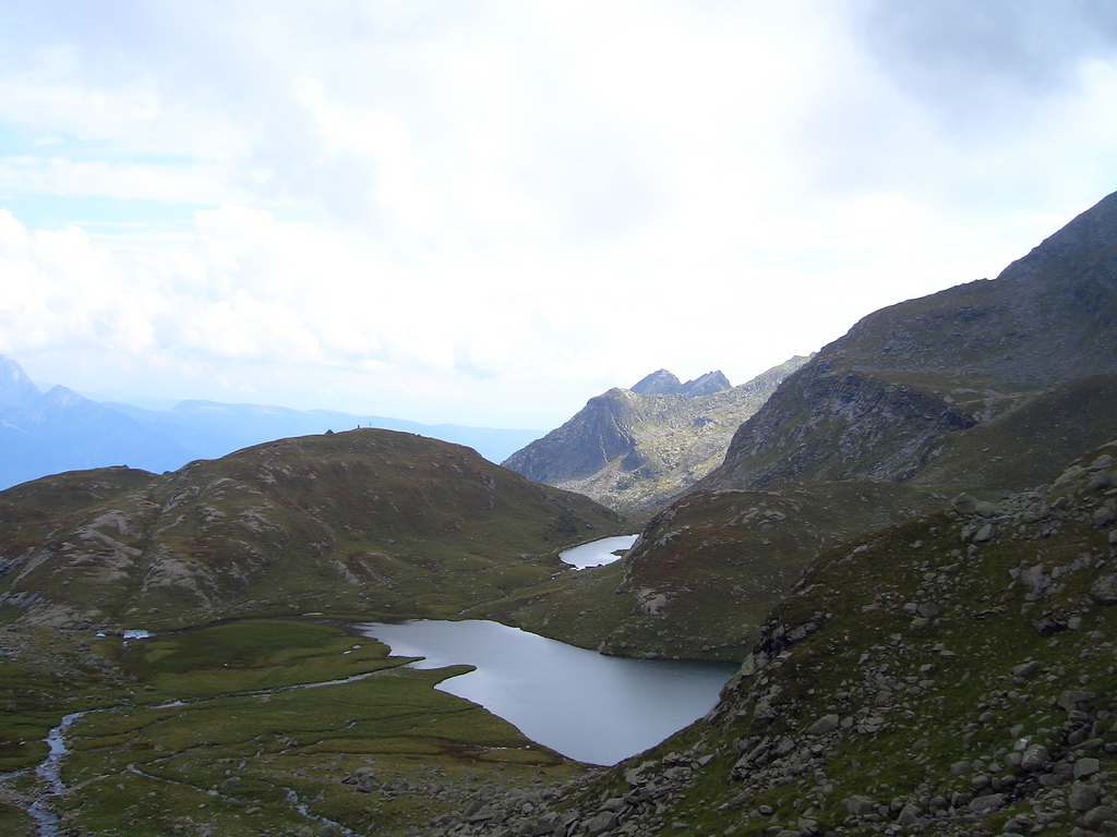 Weiter geht es! Rechts abbiegen auf den Wanderweg Nr. 22, welcher an zwei weiteren Wasserspiegeln vorbeiführt, und zwar der Kaser- und der Pfitscherlacke. Dann geht es mäßig steil zum Karjoch 2.230 m ü.d.M., und von dort aus sehr steil in vielen Kehren hoch zur Leiter Alm, dem Ausgangspunkt. Natürlich kann man diesen Anstieg auch in umgekehrter Richtung machen.