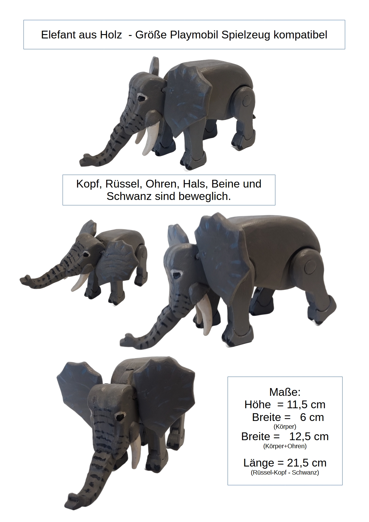 Hier jeweils anklicken um den Elefanten in verschiedene Positionen zu sehen mit einer kleinen Beschreibung im Datenblatt