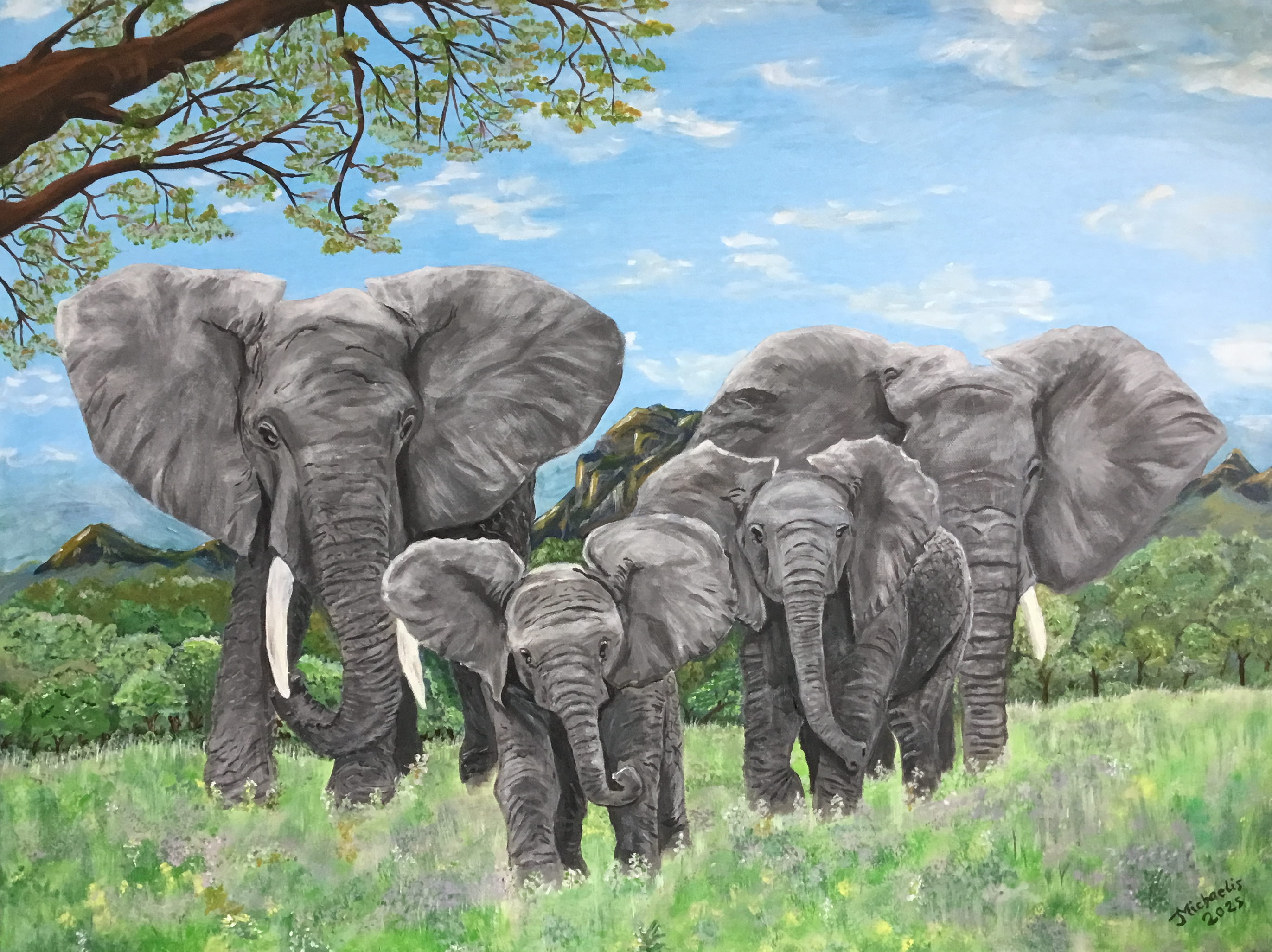 "Elefanten-Familie", 80 x 60 cm, Leinwand, Oktober 2025 fertig gestellt